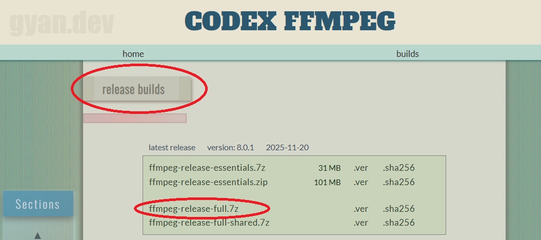 - 前往 gyan.dev 下載