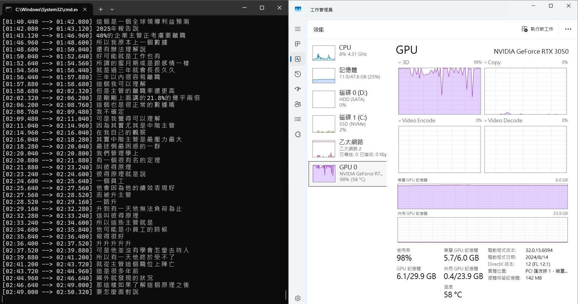 使用 3050 顯卡+ medium 模型