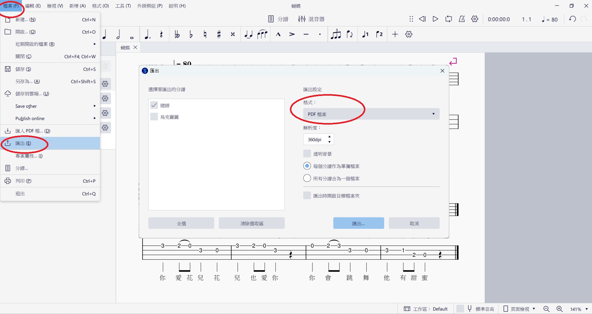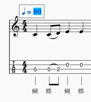 如果想要輸入五線譜,自動顯示 TAB 指法