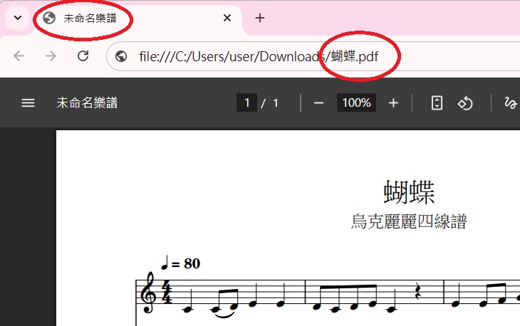 c. 點擊shift+}加長匯出 PDF 後,用 Chrome 分頁開啟,標題顯示