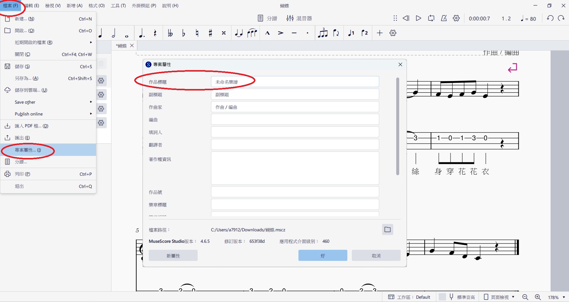 若想要改變整個樂譜的 BPM (每分鐘拍數)