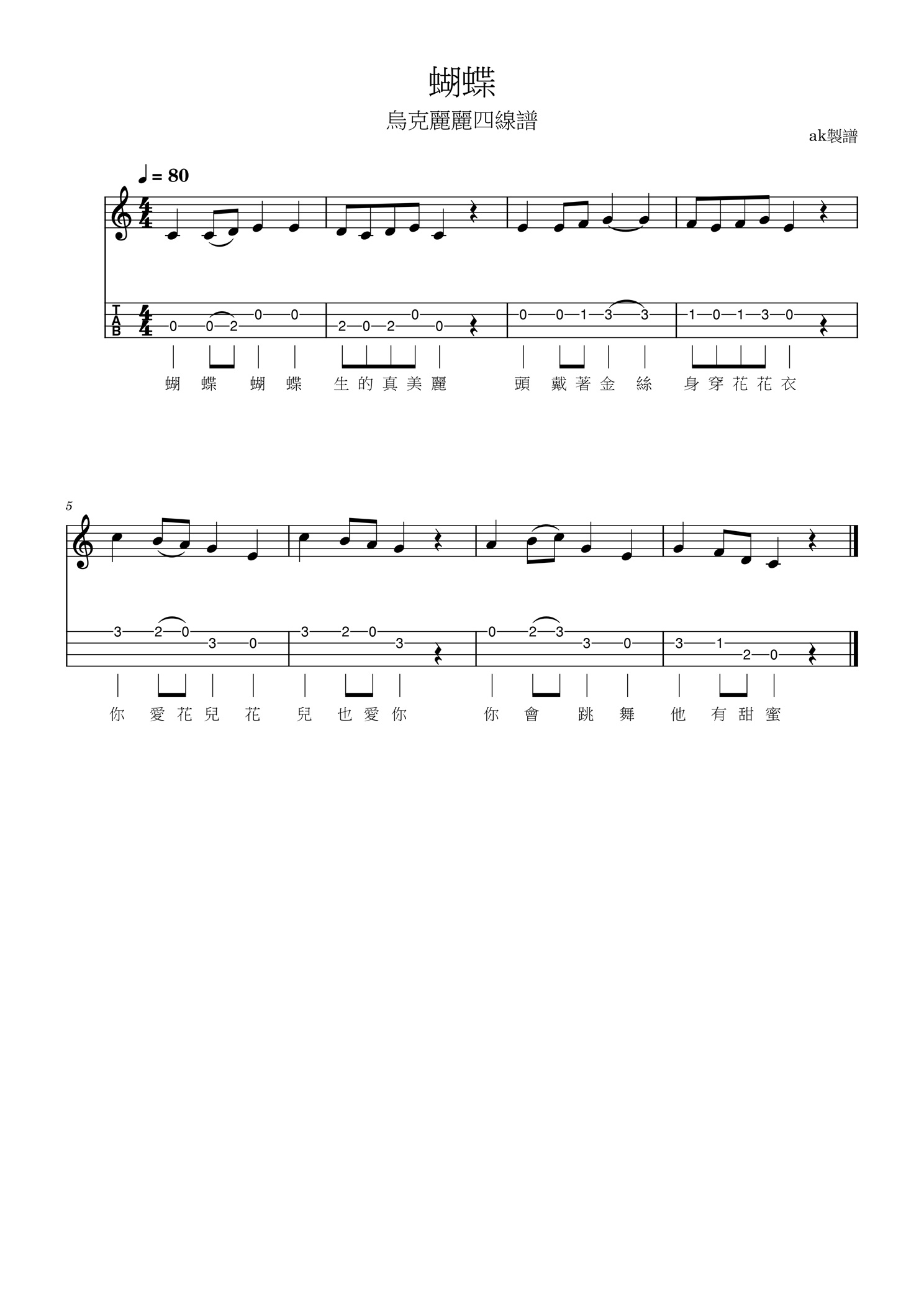 尤克里里 (指法譜): 四線譜 TAB (翻譯很怪我知道XD)烏克麗麗: 五線譜