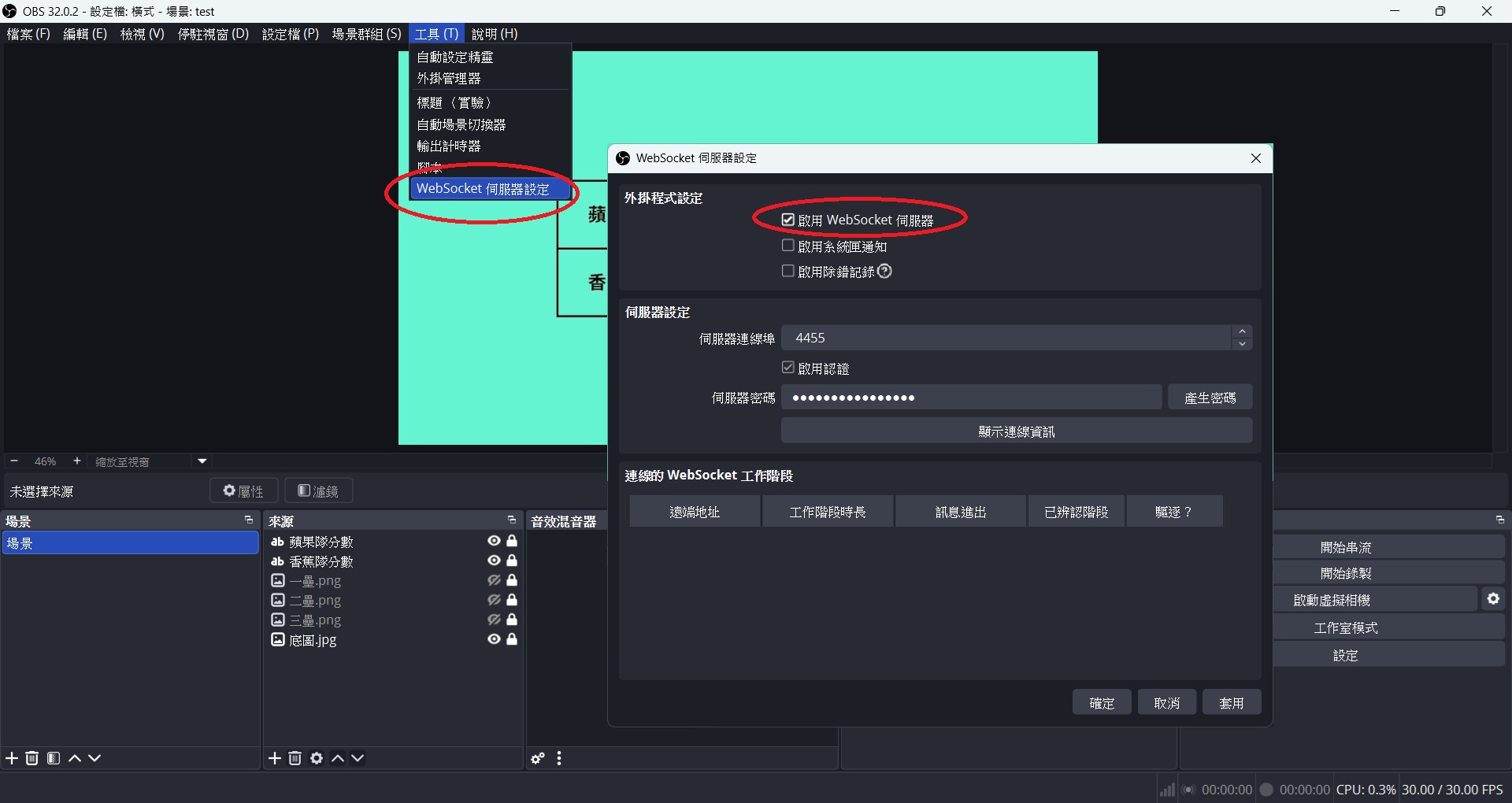 const OBS_PASS = '你的 WebSocket 密碼';